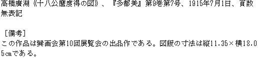 資料室 > 入口 > 一覧 > 文献 > 巽画会 > 第10回展 > 作品図版 > 高橋廣湖《十八公麿度得の図》
