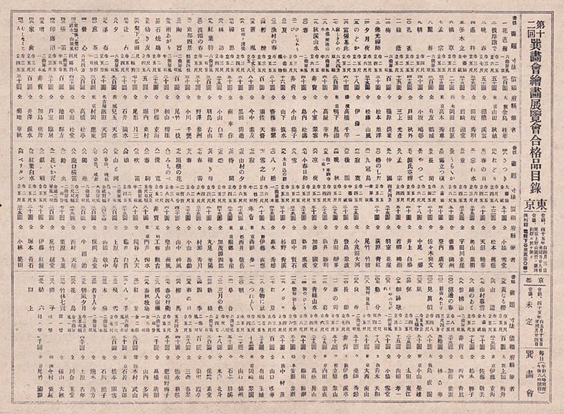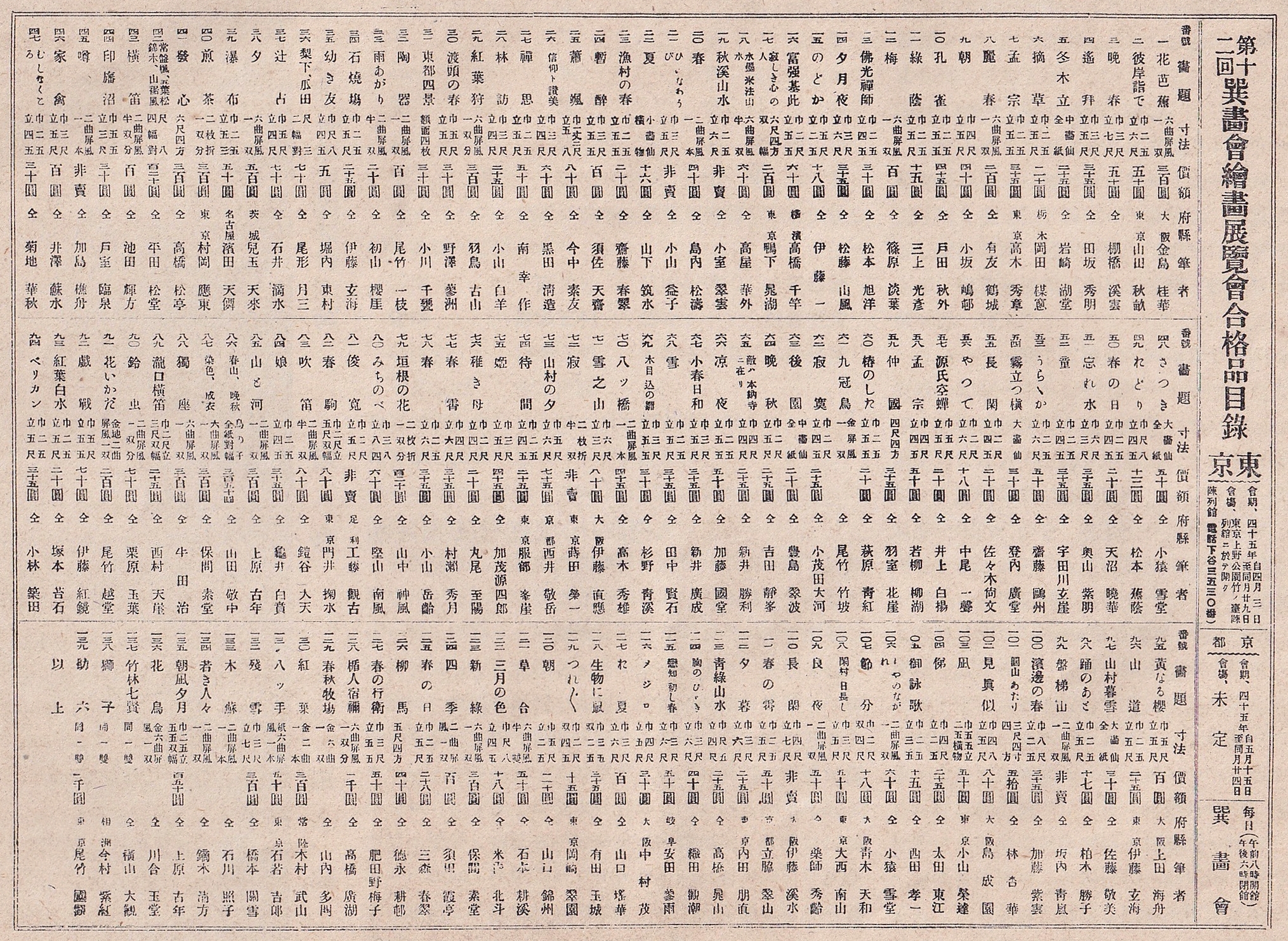 無署名「第十二回巽画会絵画展覧会合格品目録」