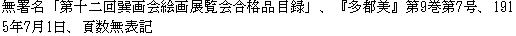 資料室 > 入口 > 一覧 > 文献 > 巽画会 > 第12回展 > 『多都美』第9巻第7号 > 無署名「第十二回巽画会絵画展覧会合格品目録」