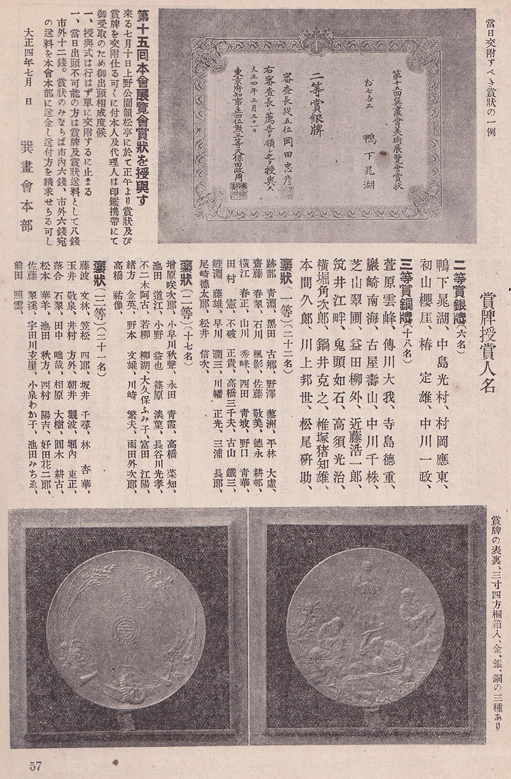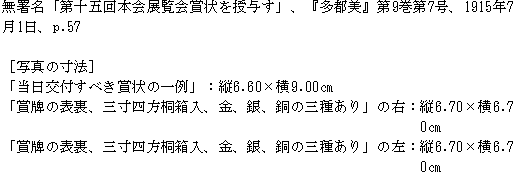 資料室 > 入口 > 一覧 > 文献 > 巽画会 > 第15回展 > 『多都美』第9巻第7号 > 無署名「第十五回本会展覧会賞状を授与す」