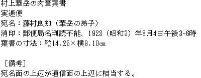 村上華岳の肉筆葉書(1928年8月4日消印)