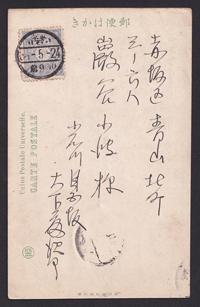 資料室 > 入口 > 一覧 > 瞑花文庫 > 作家 > 大下藤次郎 > 肉筆葉書(1905年5月24日消印)