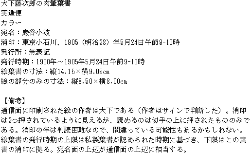 大下藤次郎の肉筆葉書(1905年5月24日消印)