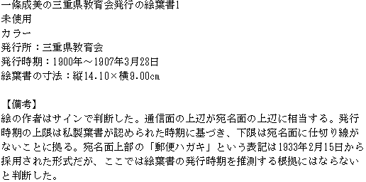 資料室 > 入口 > 一覧 > 瞑花文庫 > 作家 > 一條成美 > 三重県教育会発行の絵葉書1