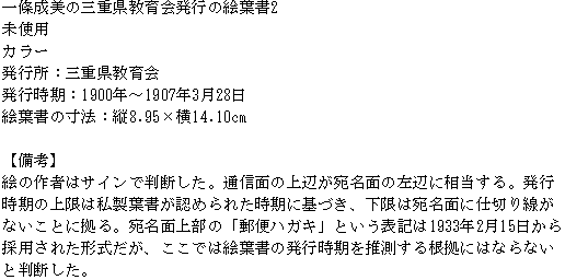 資料室 > 入口 > 一覧 > 瞑花文庫 > 作家 > 一條成美 > 三重県教育会発行の絵葉書2
