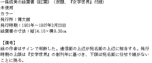 一條成美の絵葉書《紅葉》(仮題、『女学世界』付録)