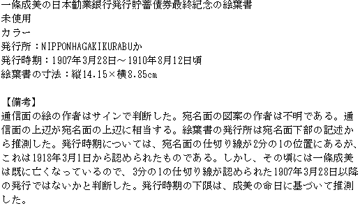 一條成美の日本勧業銀行発行貯蓄債券最終紀念の絵葉書