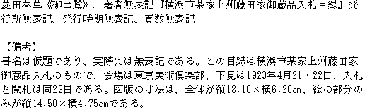 菱田春草《柳ニ鷺》(『横浜市某家上州藤田家御蔵品入札目録』)
