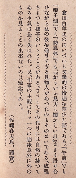 佐藤春夫の『讀賣新聞』に寄稿したと思われる記事の抜粋