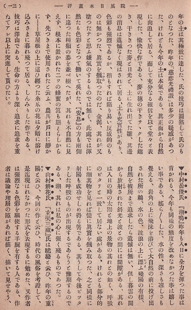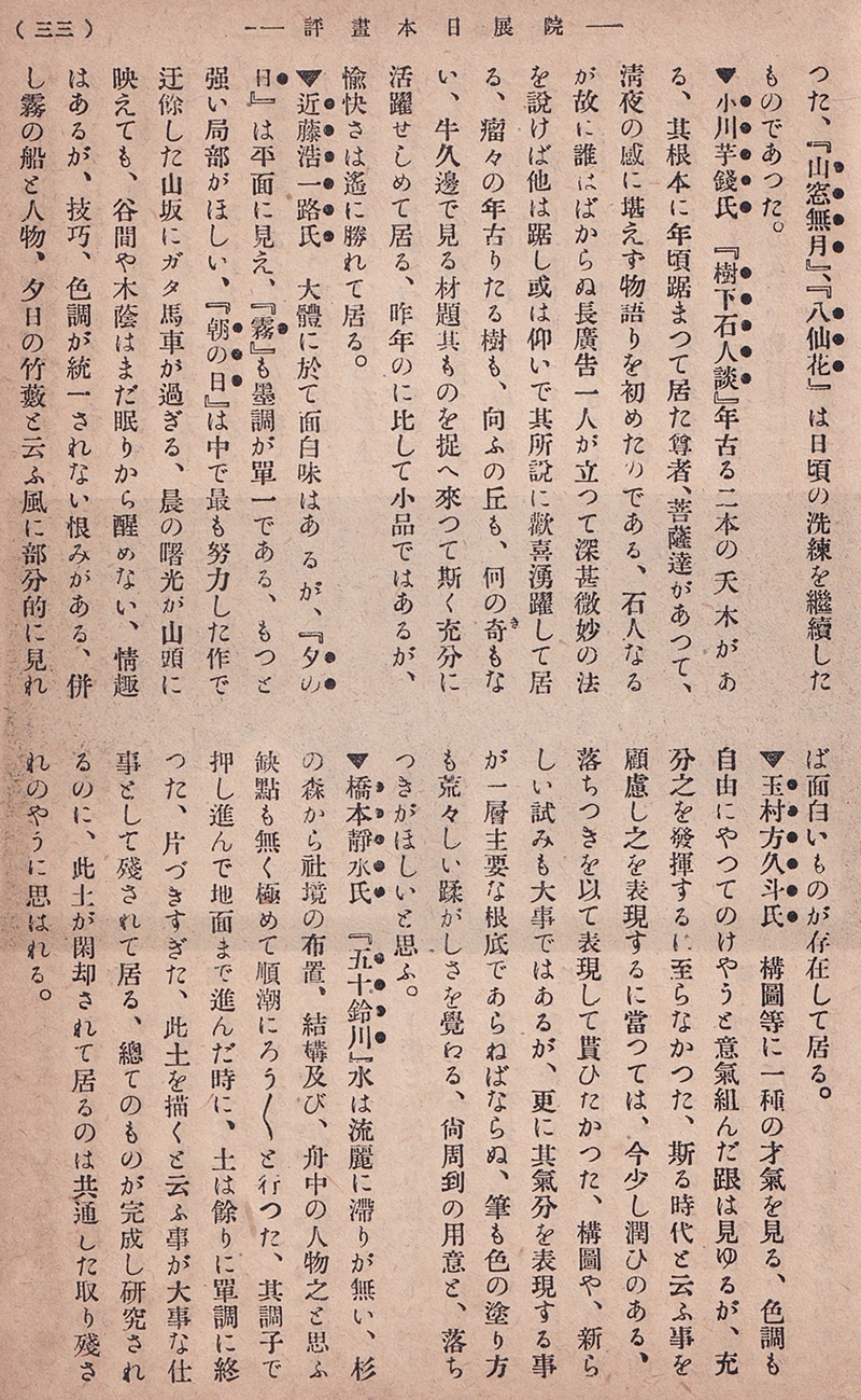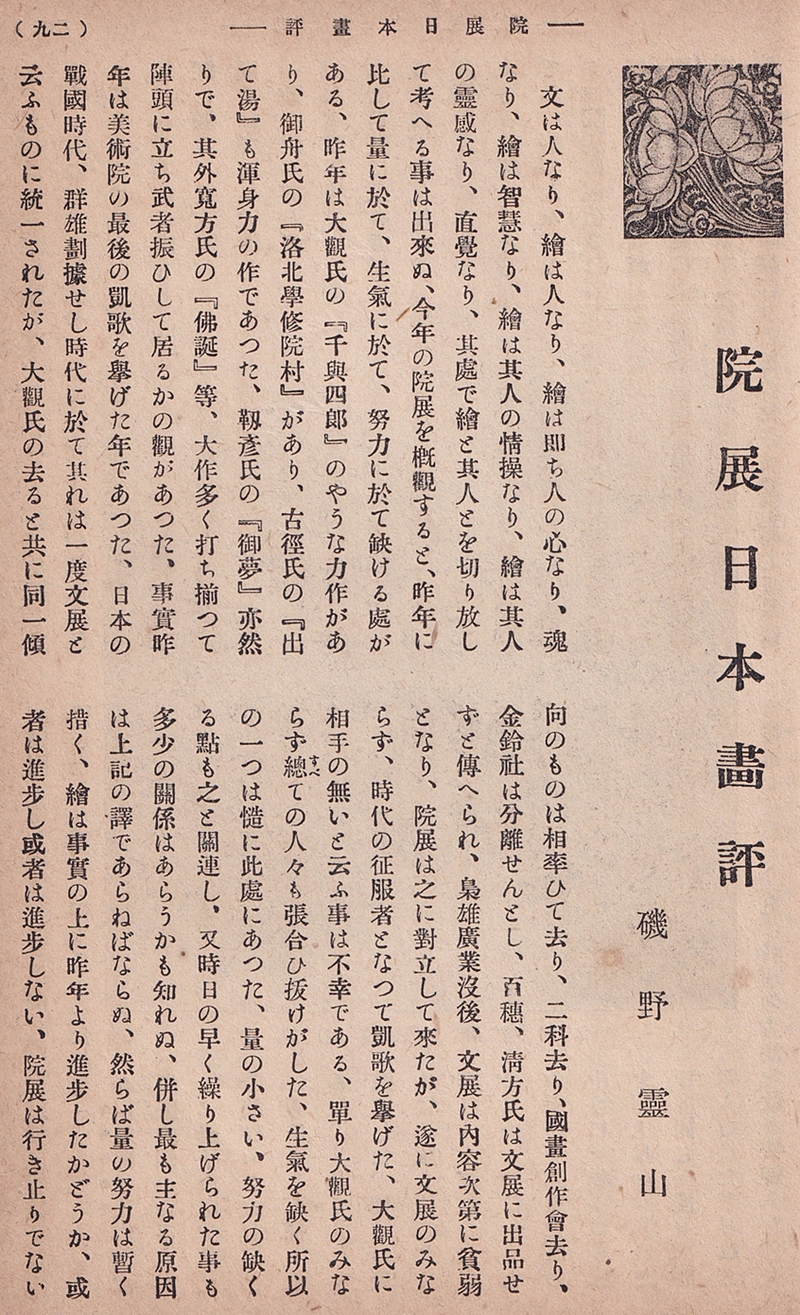 磯野霊山「院展日本画評」(『現代之美術』第2巻第6号)