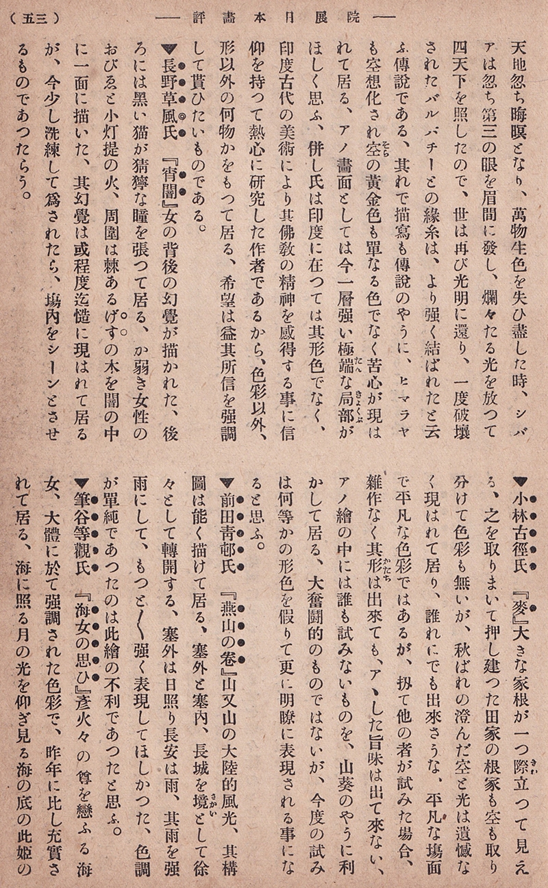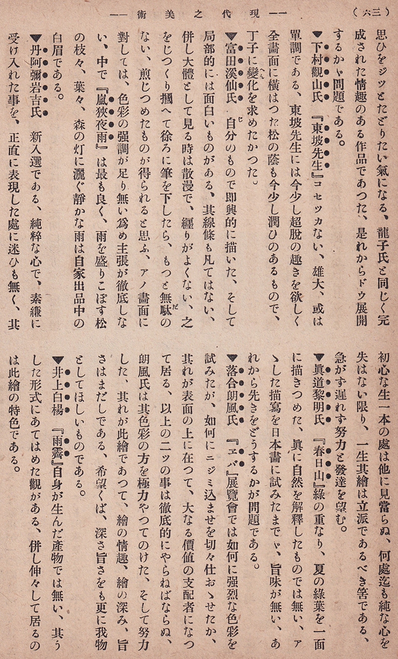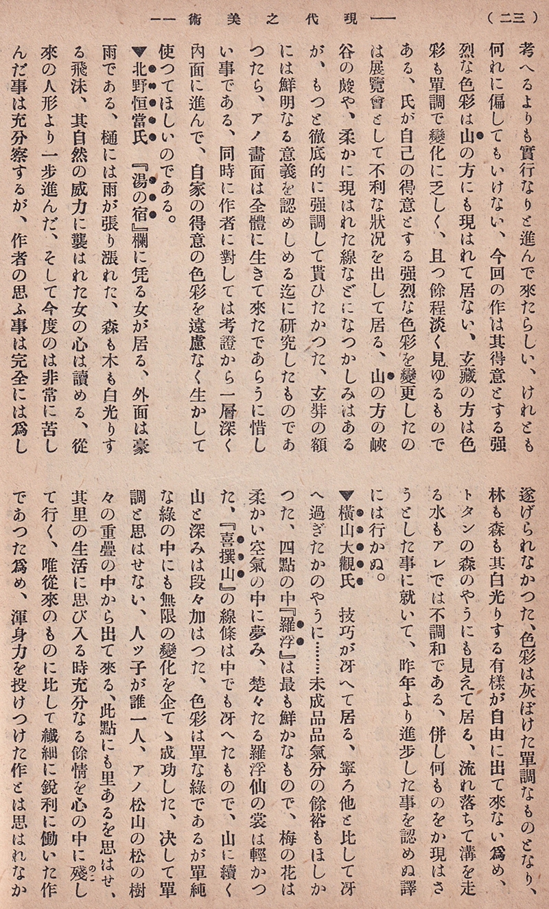 磯野霊山「院展日本画評」(『現代之美術』第2巻第6号)