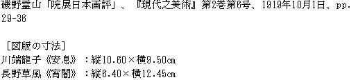資料室 > 入口 > 一覧 > 瞑花文庫 > 展覧会 > 団体展 > 再興日本美術院 > 第6回院展 > 『現代之美術』第2巻第6号 > 磯野霊山「院展日本画評」