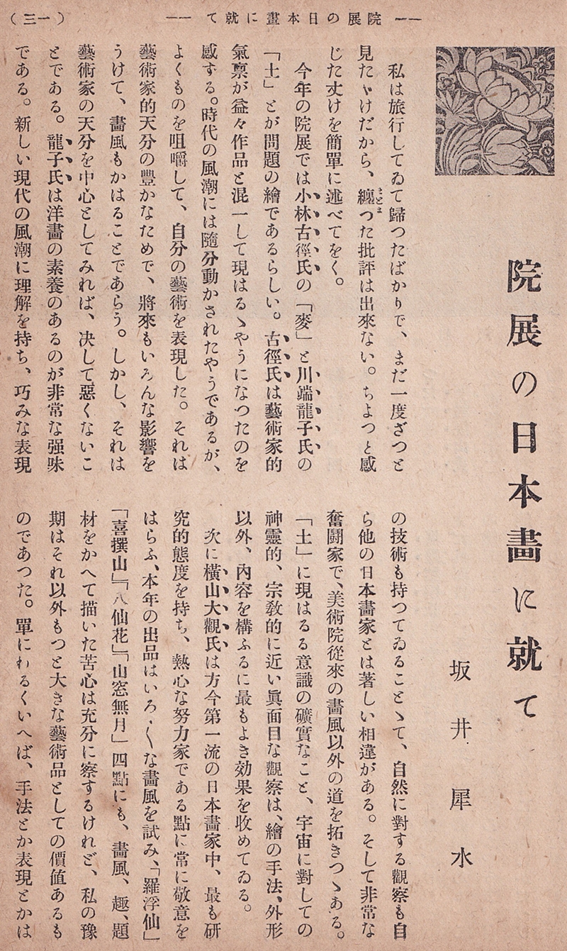 坂井犀水「院展の日本画に就て」(『現代之美術』第2巻第6号)