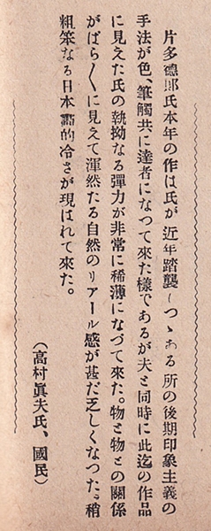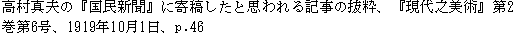 資料室 > 入口 > 一覧 > 瞑花文庫 > 展覧会 > 団体展 > 再興日本美術院 > 第6回院展 > 『現代之美術』第2巻第6号 > 高村真夫の『国民新聞』に寄稿したと思われる記事の抜粋