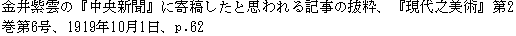 資料室 > 入口 > 一覧 > 瞑花文庫 > 展覧会 > 団体展 > 再興日本美術院 > 第6回院展 > 『現代之美術』第2巻第6号 > 金井紫雲の『中央新聞』に寄稿したと思われる記事の抜粋
