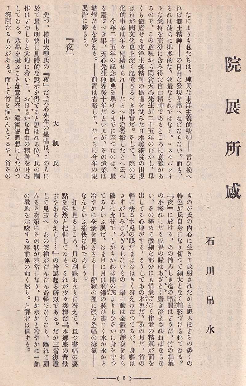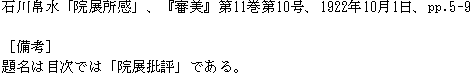 資料室 > 入口 > 一覧 > 瞑花文庫 > 展覧会 > 団体展 > 再興日本美術院 > 第9回院展 > 『審美』第11巻第10号 > 石川帛水「院展所感」