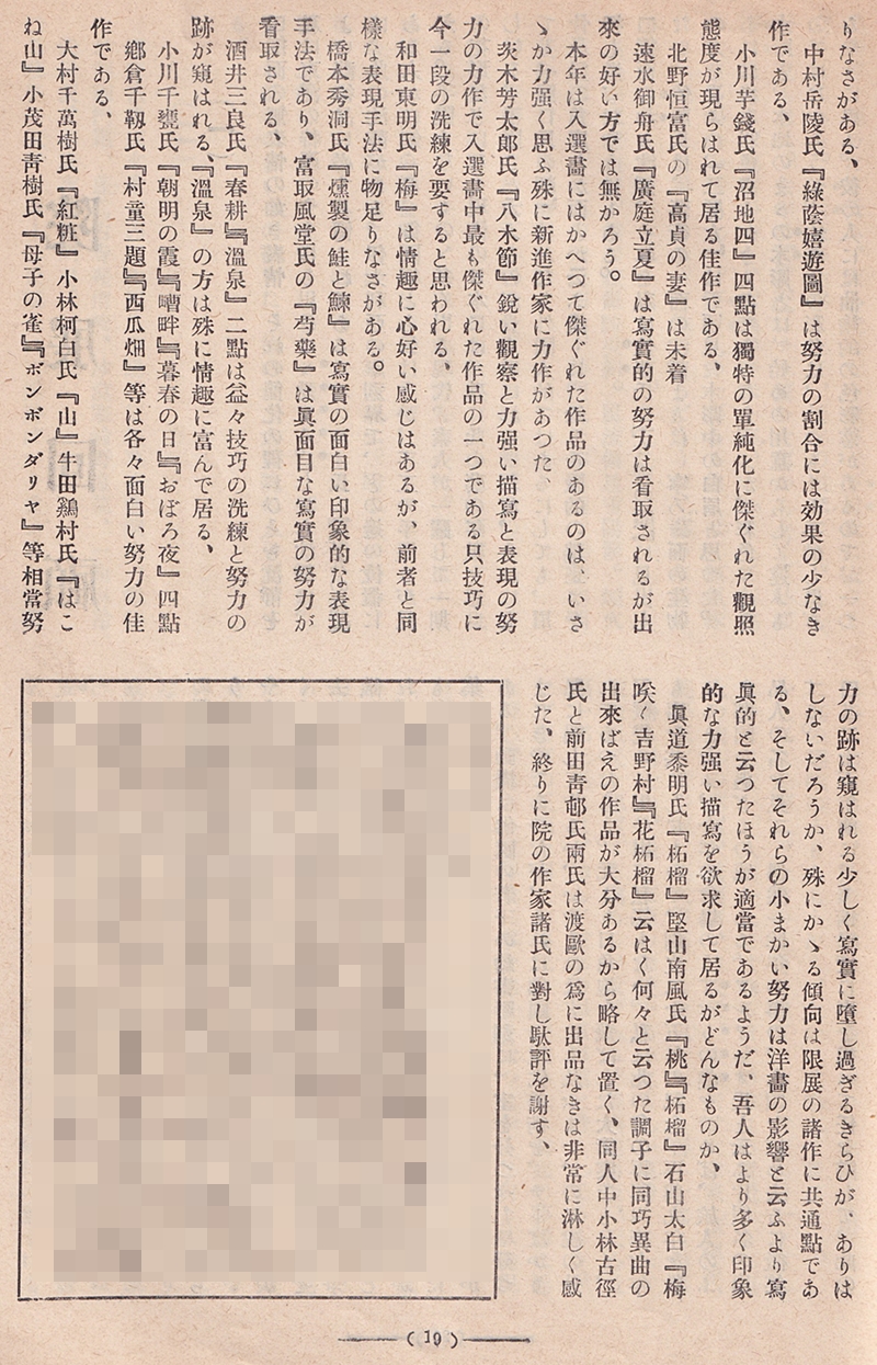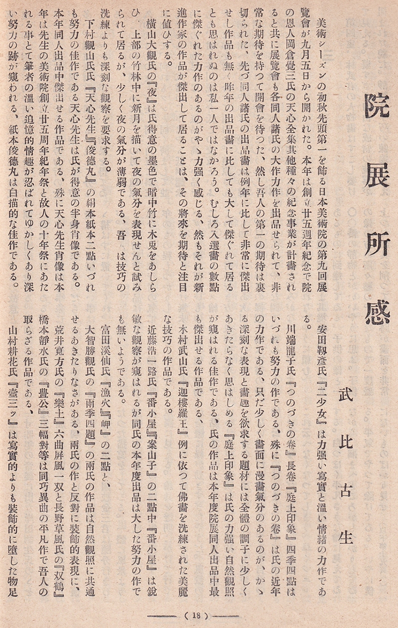 武比古生「院展所感」