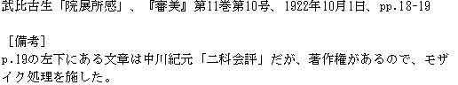 資料室 > 入口 > 一覧 > 瞑花文庫 > 展覧会 > 団体展 > 再興日本美術院 > 第9回院展 > 『審美』第11巻第10号 > 武比古生「院展所感」