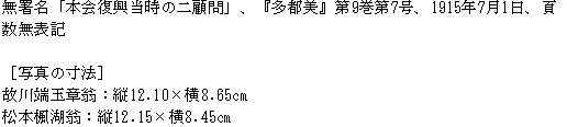 資料室 > 入口 > 一覧 > 文献 > 巽画会 > 歴史 > 『多都美』第9巻第7号 > 無署名「本会復興当時の二顧問」