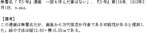万代恒志が作者である可能性がある漫画「『少年』漫画 一回も休んだ事はない」