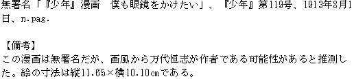 万代恒志が作者である可能性がある漫画「『少年』漫画 僕も眼鏡をかけたい」