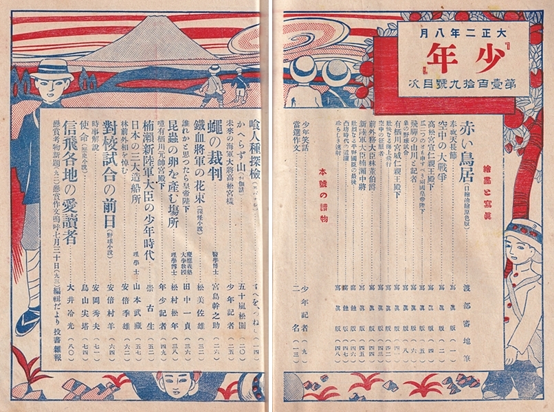 万代恒志が描いた可能性がある挿絵(『少年』第119号、目次)