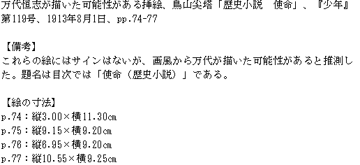 万代恒志が描いた可能性がある挿絵(鳥山尖塔「歴史小説 使命」)