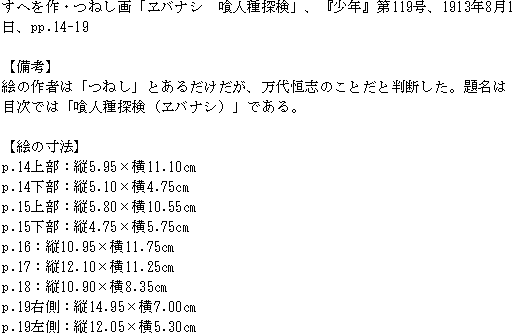 資料室 > 入口 > 一覧 > 瞑花文庫 > 作家 > 万代恒志 > 『少年』第119号 > すへを作・つねし画「ヱバナシ 喰人種探検」