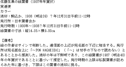 佐藤生巣の絵葉書(1907年年賀状)