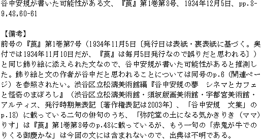 谷中安規が書いた可能性がある文(『莨』第1巻第8号、pp.8-9,48,60-61)