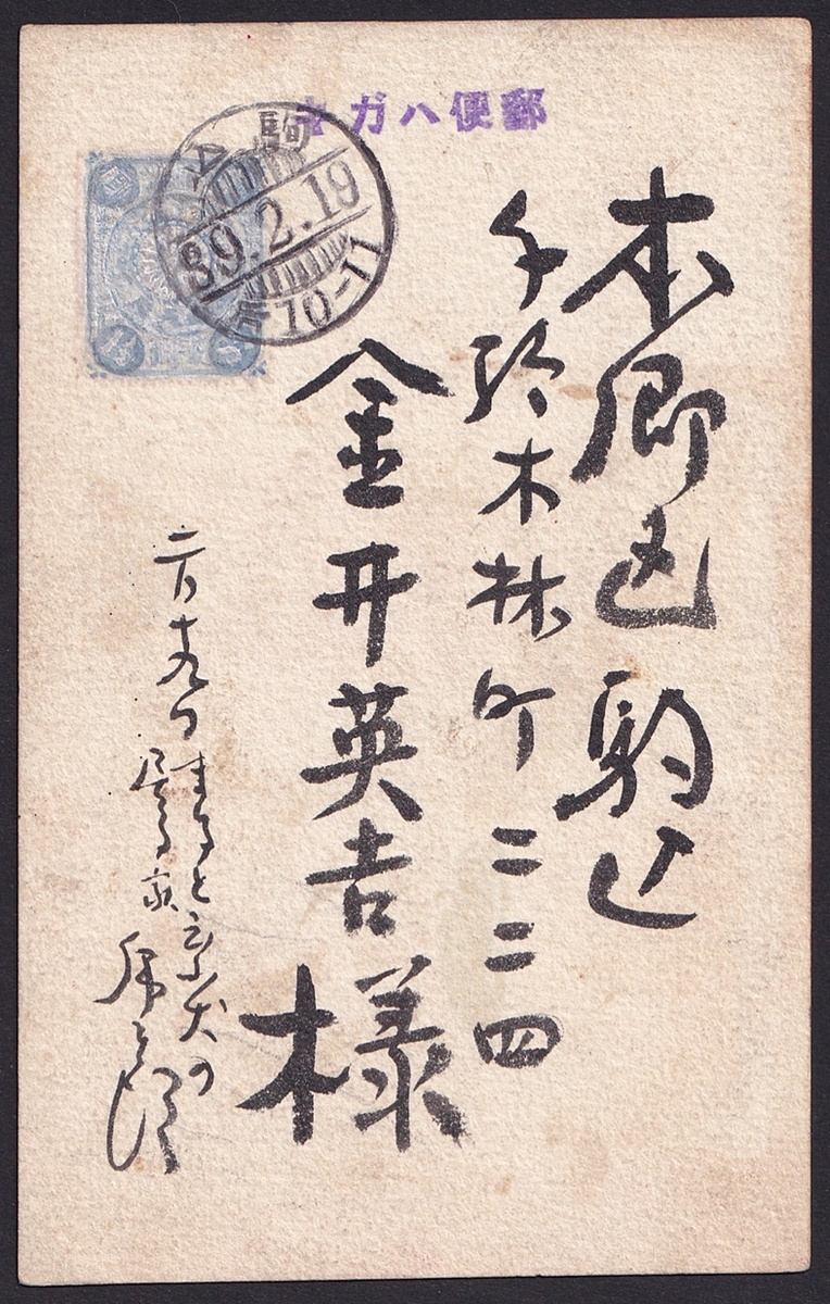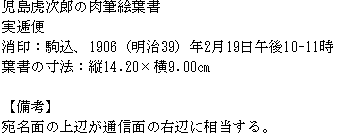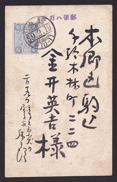 児島虎次郎の肉筆絵葉書(1906年2月19日消印)